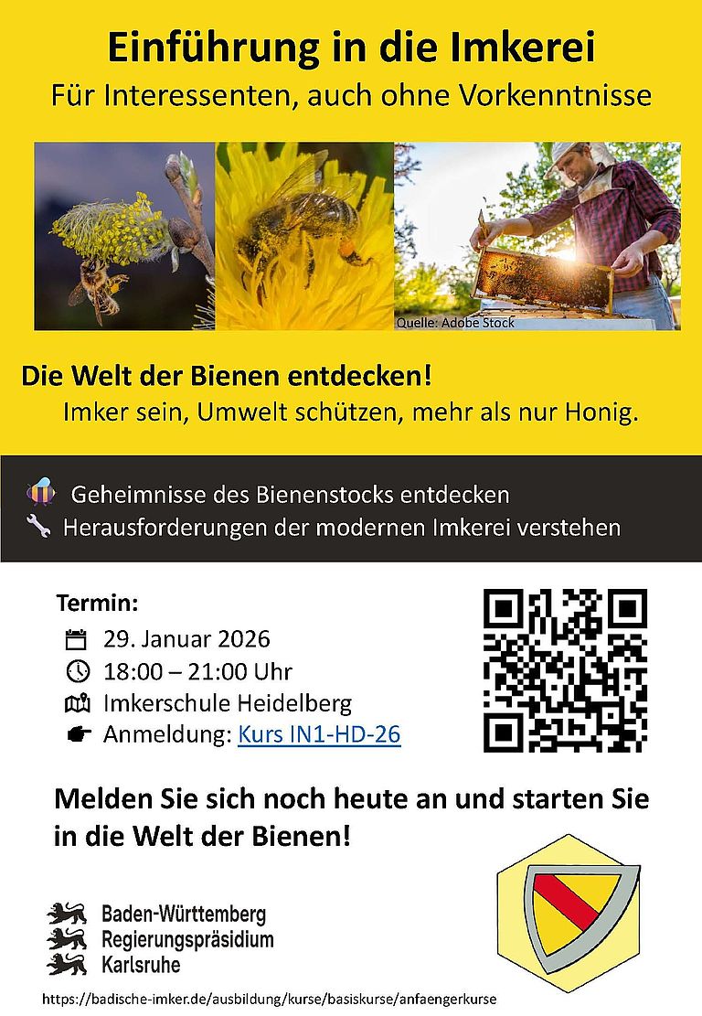 Unsere neuen Kurse an den Imkerschulen in Heidelberg und Oberentersbach und Webinare sind zur Anmeldung geöffnet.
